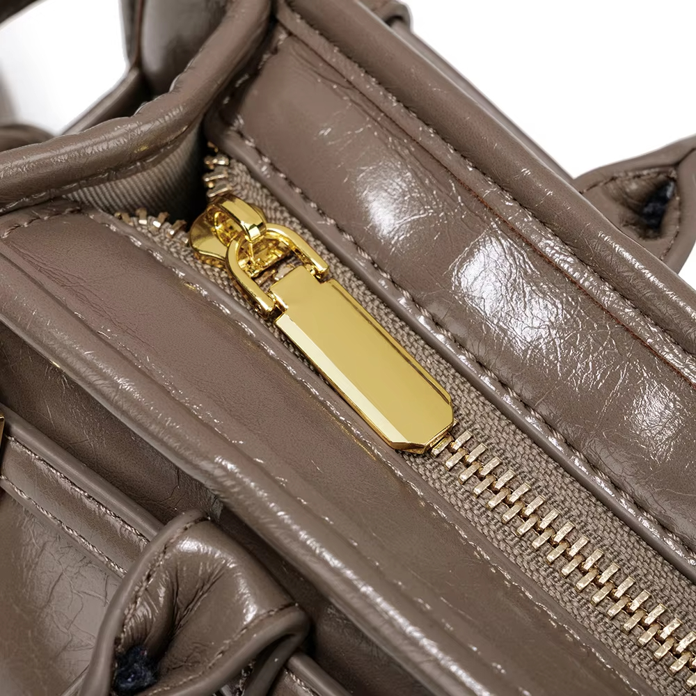 • 2025 New Fashion Women's Retro Motorcycle Cross-body Shoulder Bag Soft Boston for Baguette Top Layer Oil Wax Leather