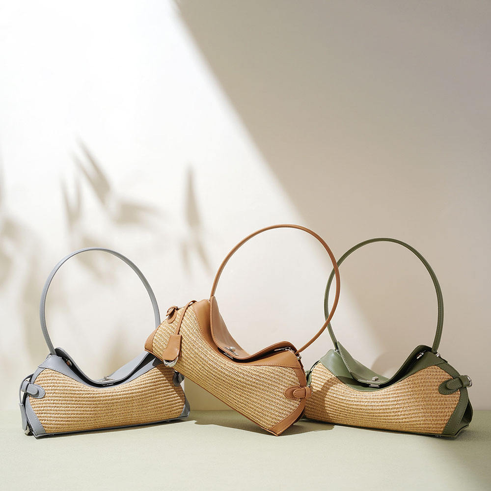 • High Quality Leather Women's Handbag Casual Crossbody Sling Raffia Shoulder Bag PP Straw Fashionable Female Tote Bag