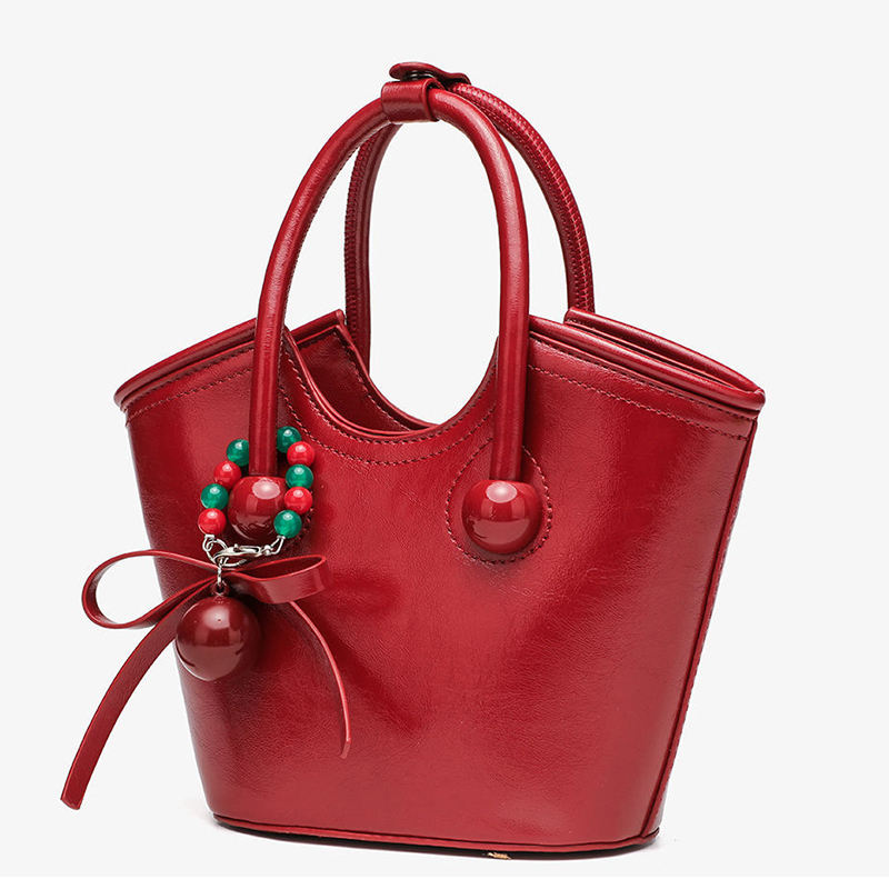 Red Cherry Handbag Tote Bag Large Capacity Wedding Basket Shape Versatile Shoulder Bag Cross-body for Girls