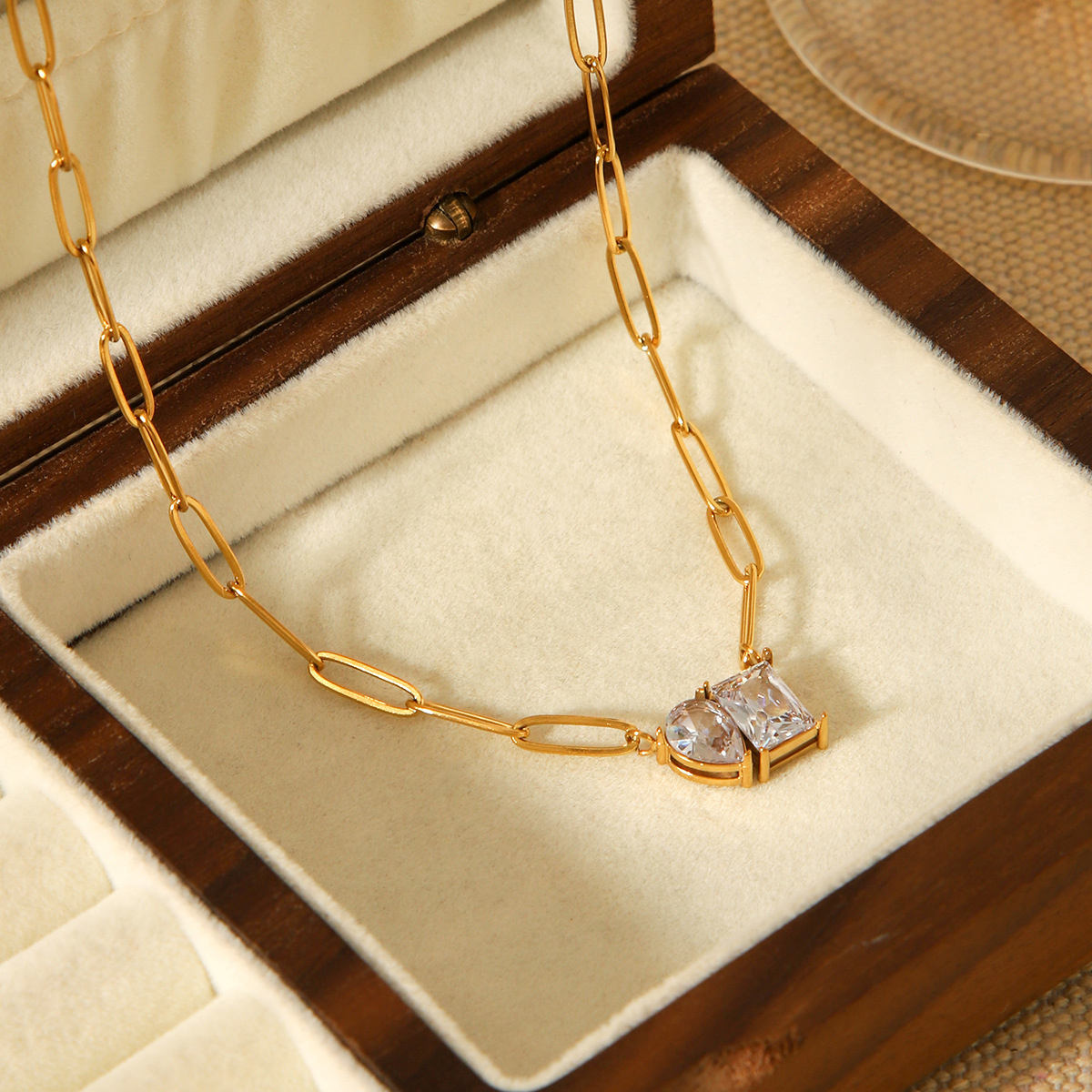 • Dainty Paperclip Chain Necklace for Women Non Tarnish Triangle Rectangle Zircon Pendant Necklace