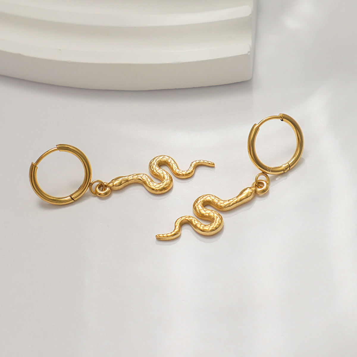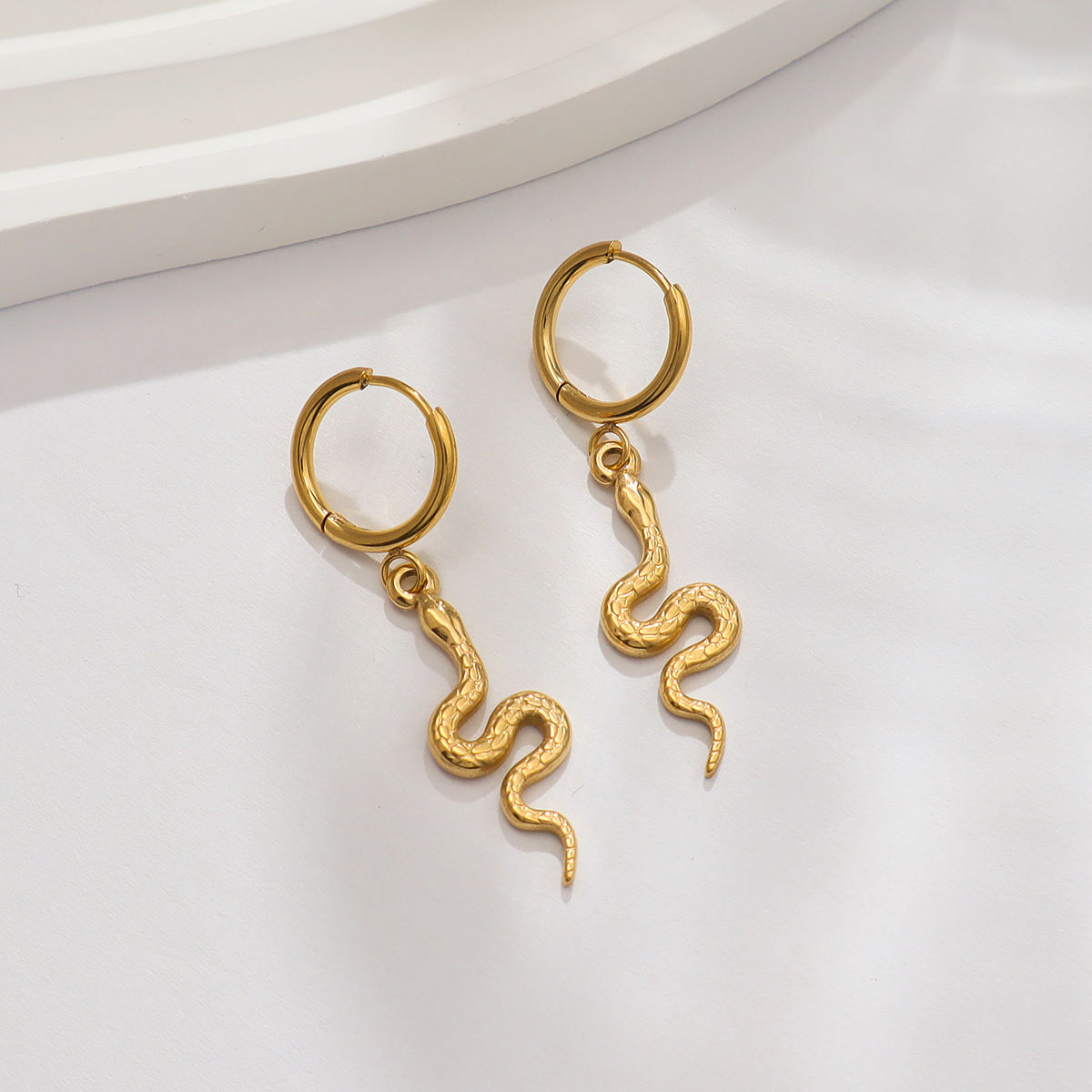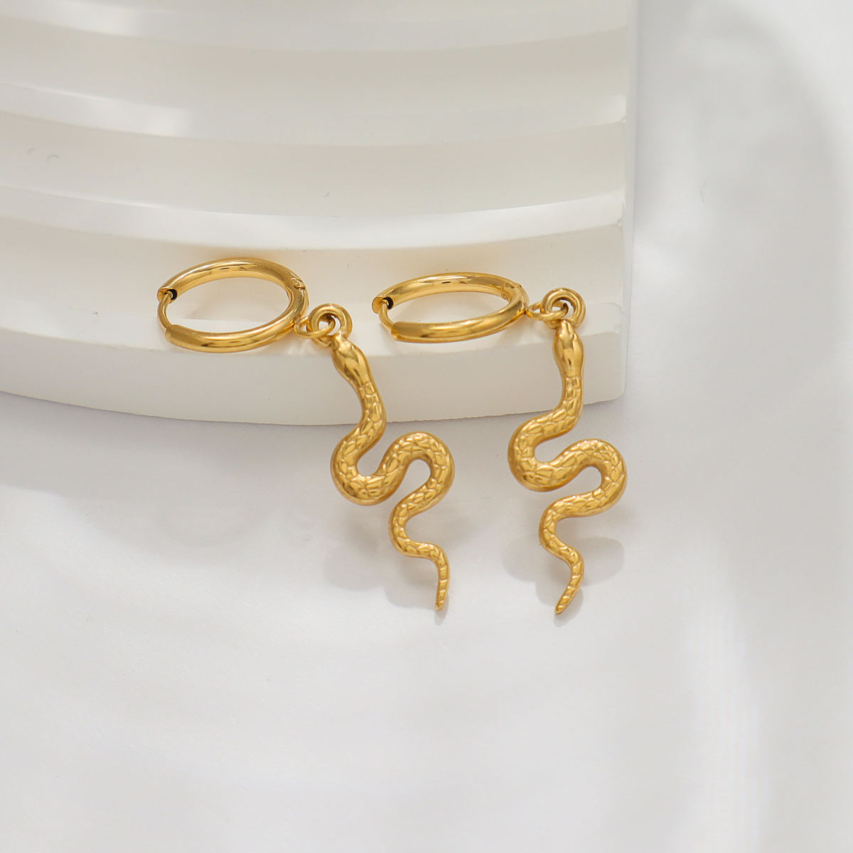 Fashion Stainless Steel Snake Drop Earrings for Women Statement Jewelry Waterproof Plated Charm Pendant Hoop Earrings