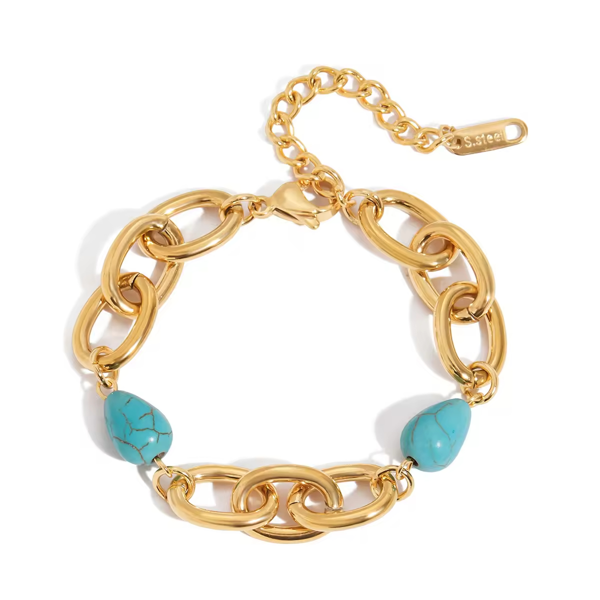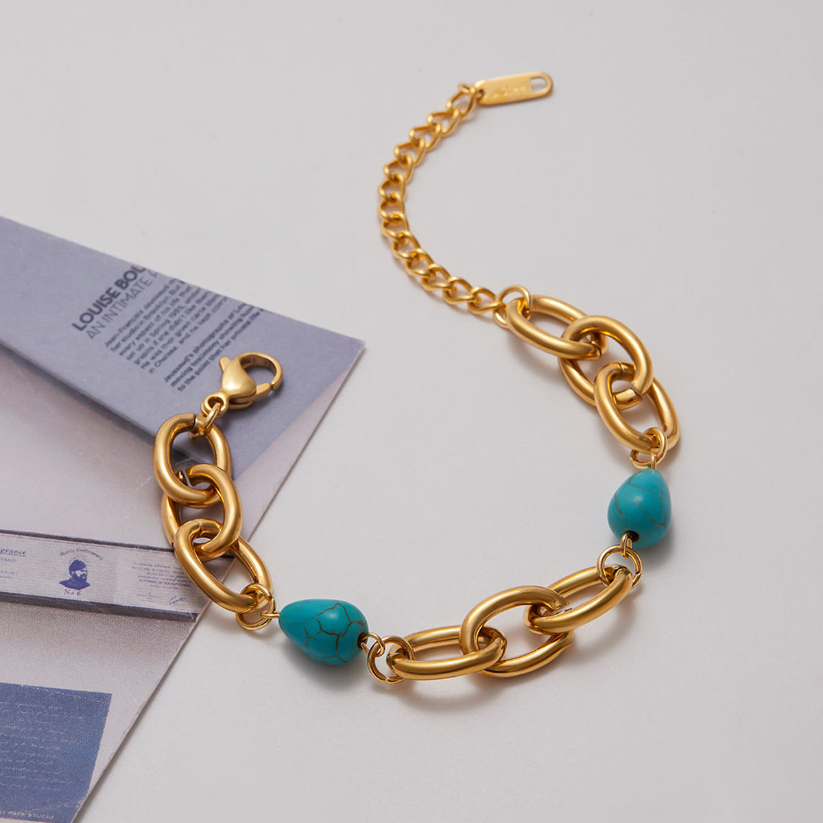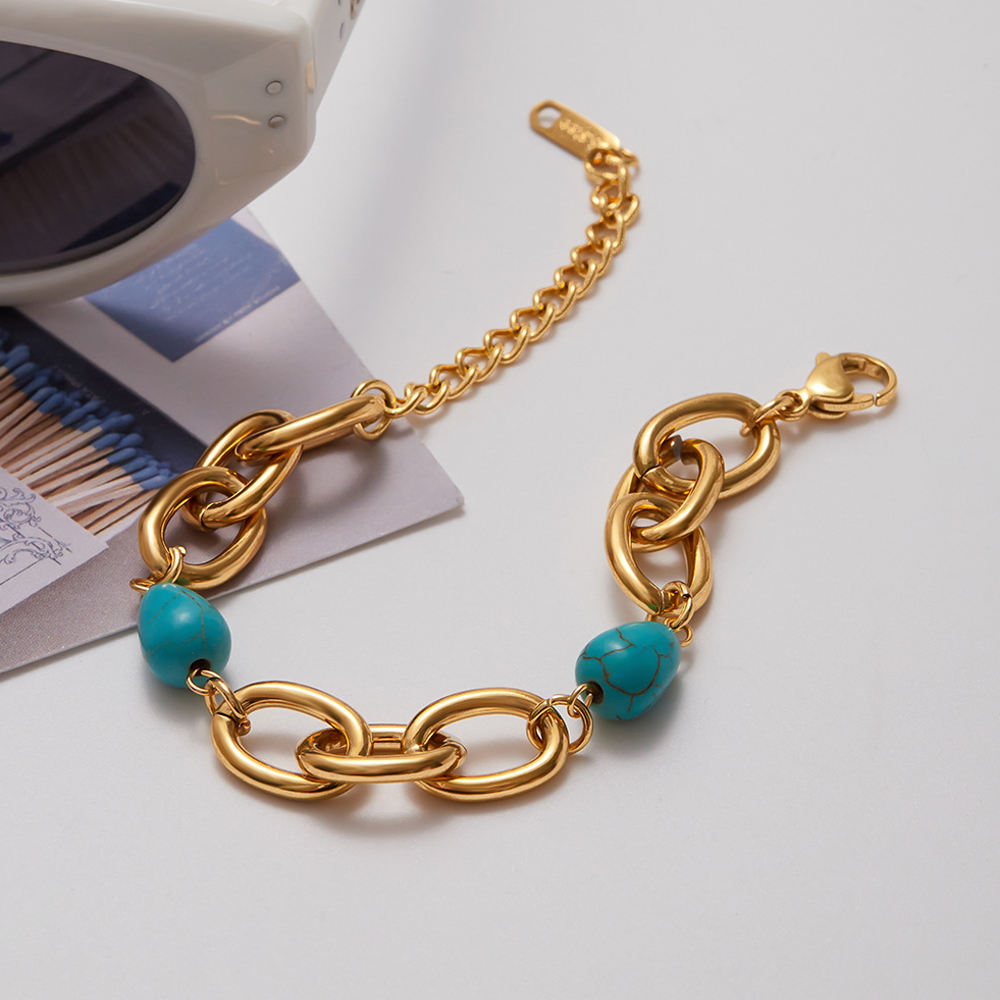 Minimalist Waterproof Plated Stainless Steel Bracelet Light Luxury Women Fashion Blue Turquoise Bead Bracelets Jewelry