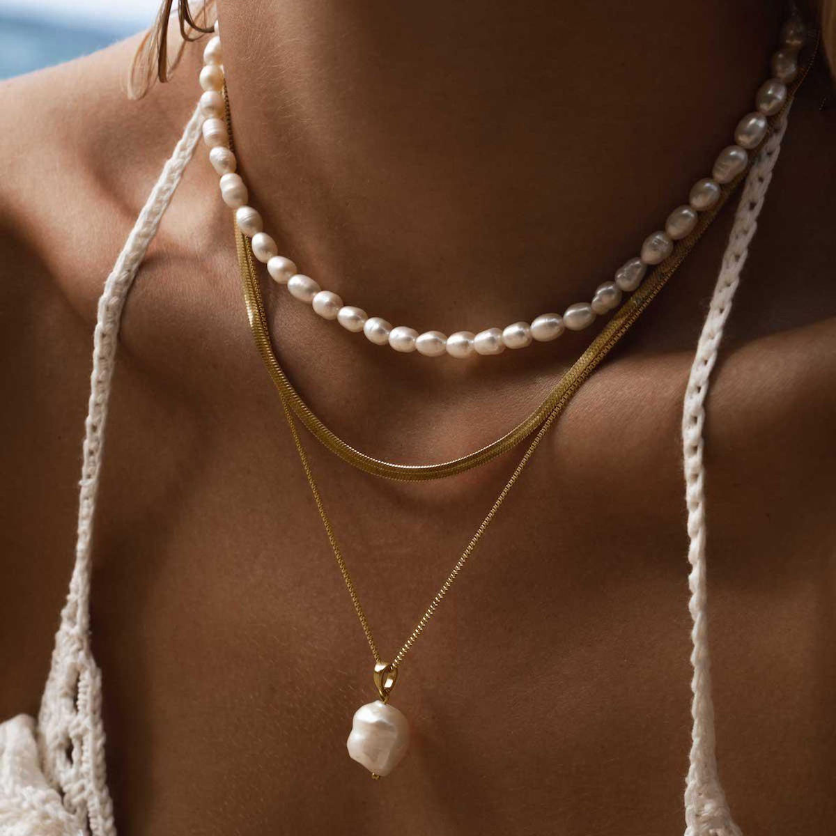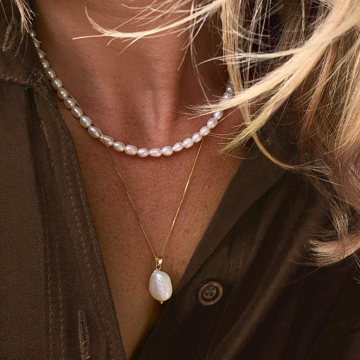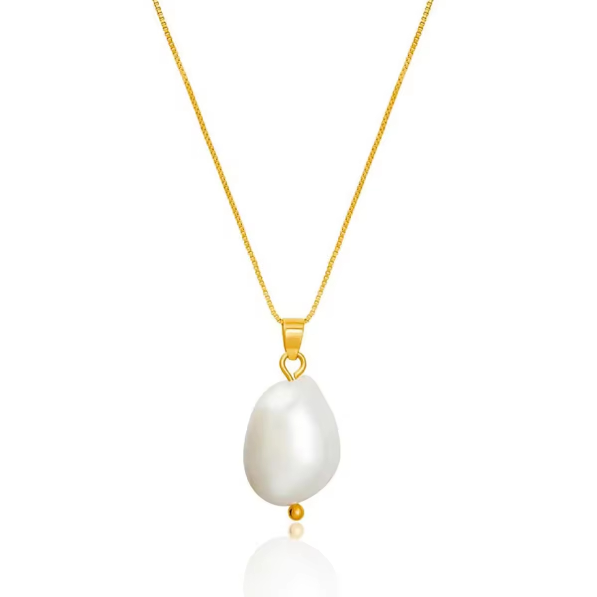 Stainless Steel Box Chain Necklace for Women Dainty Freshwater Pearl Drop Pendant Necklace Jewelry