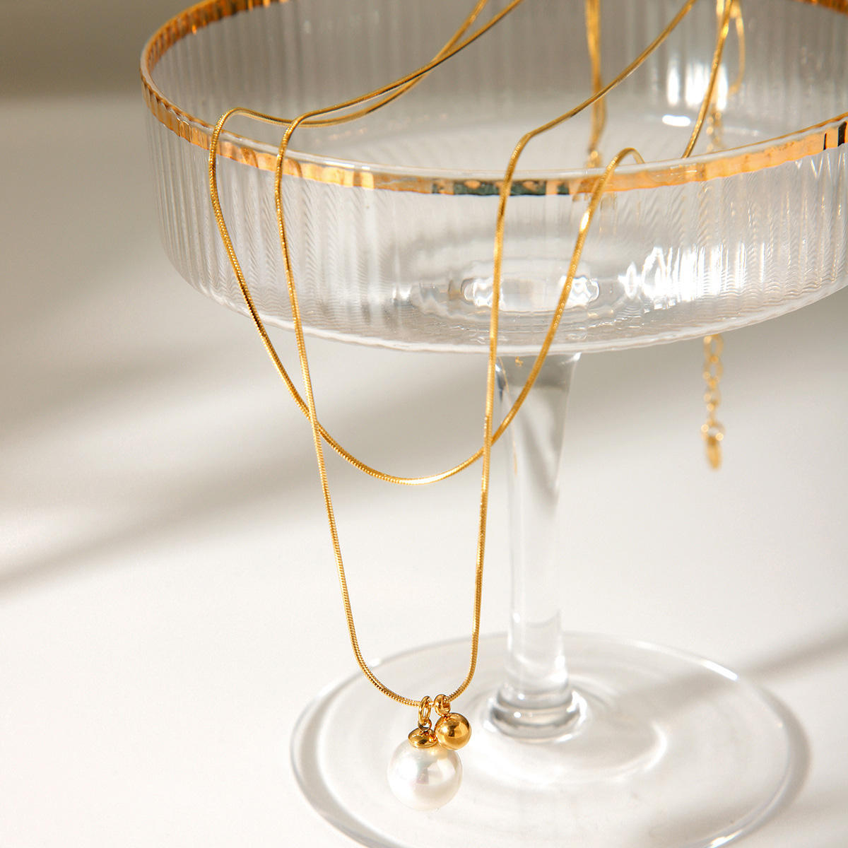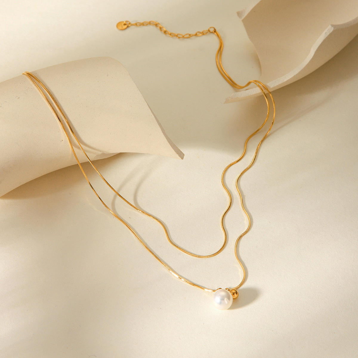 • Stainless Steel Layered Snake Chain Necklace Waterproof Jewelry Plated Ball Pearl Pendant Necklace for Women