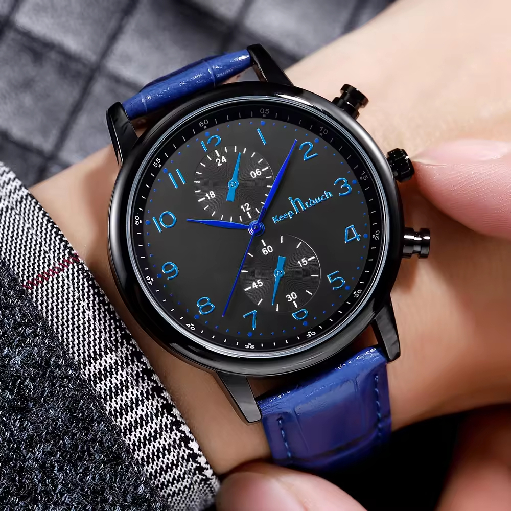 A luxurious classic style men's quartz watch with a 3 ATM water resistance rating and durable stainless steel strap. This watch features a 42mm diameter and 9mm thickness alloy case, paired with leather/steel/netted straps, suitable for various uses in both business and casual settings.